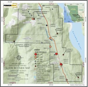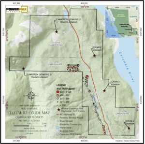 Toronto, Ontario – March 11th, 2026, Powermax Minerals Inc. (CSE: PMAX) (OTCQB: PWMXF) (FWB: T23) (“Powermax” or the “Company”) is pleased to report encouraging rare earth element (REE) results from recent soil and surface rock sampling programs at its Cameron REE Property, located approximately 40 km south of Revelstoke, British Columbia, along Highway 23 near the Columbia River. The results indicate the presence of rare earth element mineralization associated with NYF-type pegmatites and define multiple priority exploration targets for follow-up work.