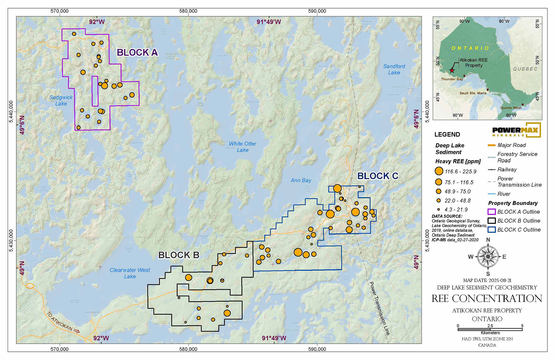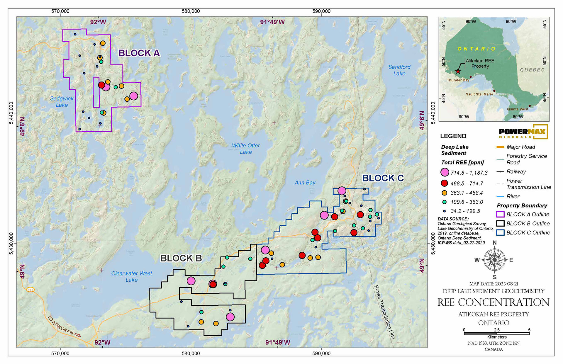 Source: Dyer, R.D. (1999). Lake sediment and water geochemical data from the Atikokan–Lumby Lake area; northwestern Ontario. Ontario Geological Survey, Miscellaneous Release-Data, MRD043
